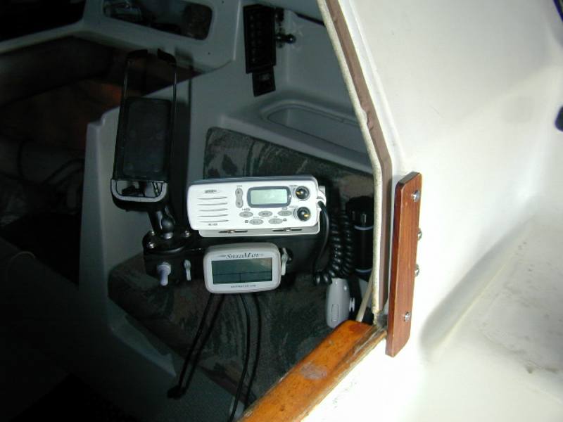 The gray toggle switch on the left end of the swingarm is for the steaming lights so I don't have to go into the main switch inside cabin if I start my outboard at night.
