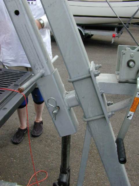 The strut in the down position. The round rod sticking out is where you attach the trailer strap to raise the strut.
