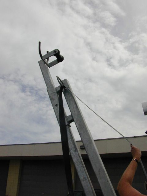The trailer strap is fed thru a guide before attaching the hook on the round rod. Then the strap is winched to raise the strut