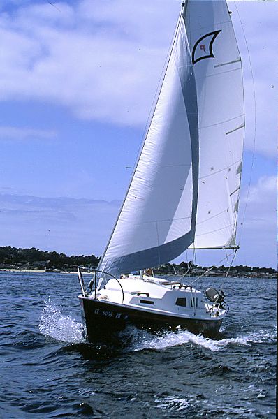 Chris Beatty's P-19 "Deep Blue" on Monterey Bay. Courtesy of Small Craft Advisor Magazine. From their review of the Potter 19, published in May 2000. Visit their website at http://www.smallcraftadvisor.com/