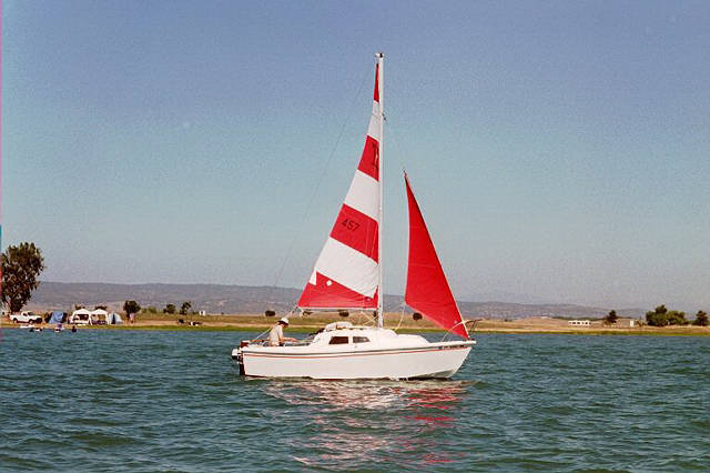 Saturday was perfect for relaxed sailing and beginners. Winds were light, but there was enough wind to fill our sails and keep the boats moving. We all got out on the water and practiced our sailing skills. Can somebody ID this P19 sailing at a leisurely pace for me?