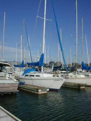 We started up the A4, and headed out under power to return to our slip in Berkeley Marina. My hubby, Dave, met us over there, bringing sandwiches and beer for a celebration. We sat on the boat in the slip for about an hour, enjoying our new boat and each others' company.