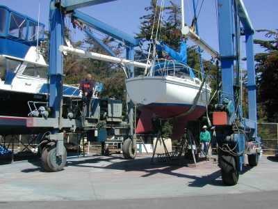 asked the yardman to hoist the boat up off the cradle with the travel lift so