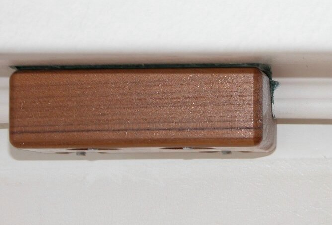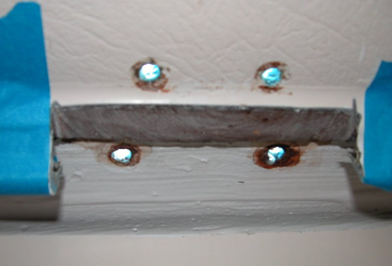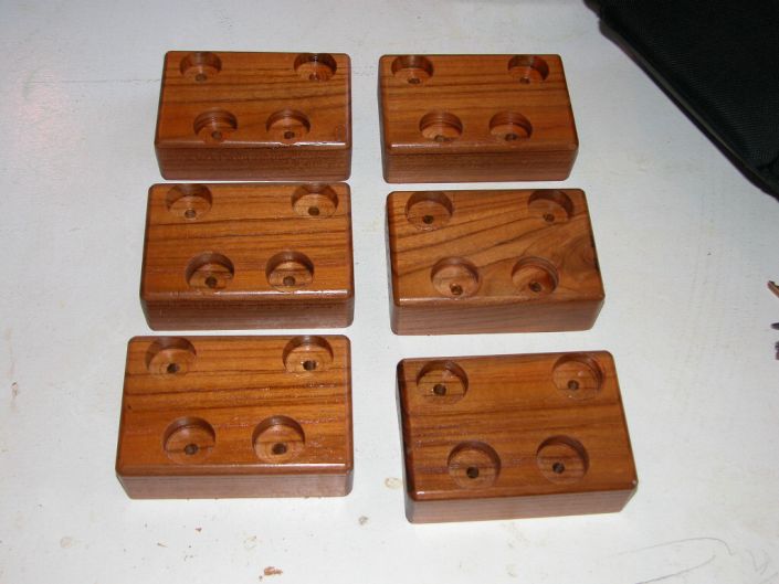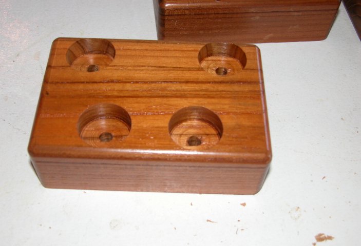 | I made six square teak backers. For the bow pulpit, I made round teak backers without counter sinks. I haven't done the stern pulpit yet. |