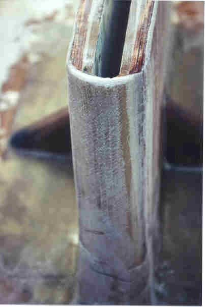 A close up of the aft edge of the trunk. We put an additional 8 layers of glass cloth on the aft edge and a couple of new layers of glass over the new plywood.