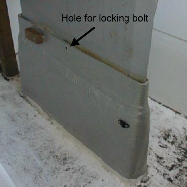 The second design if found in the Potter 19's built when Joe Edwards owned the company, from about 1978 through the early 1990's. It consists of a horizontal bolt passing sideways thru a hole drilled in the keel and the trunk. It can potentially damage the keel trunk during hard grounding. There are several historical examples of damage from grounding with this system.