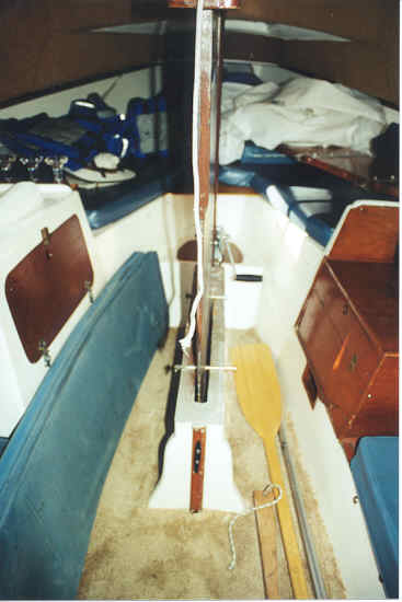 (There are some situations in which you can safely raise the keel the with sails up if you need to, but beginners should avoid it. If you must raise the keel to clear the keel of seaweed or get off a grounding, be sure the jibsheets and mainsheet are free first. Experienced skippers may choose to raise the keel as much as 12 inches when sailing dead down wind in calm seas, or in shallow water. Some skippers have drilled holes thru the keel to support the weight when raised. My 1985 has two holes drilled thru it to support it on top of the trunk at about a 12" lift)