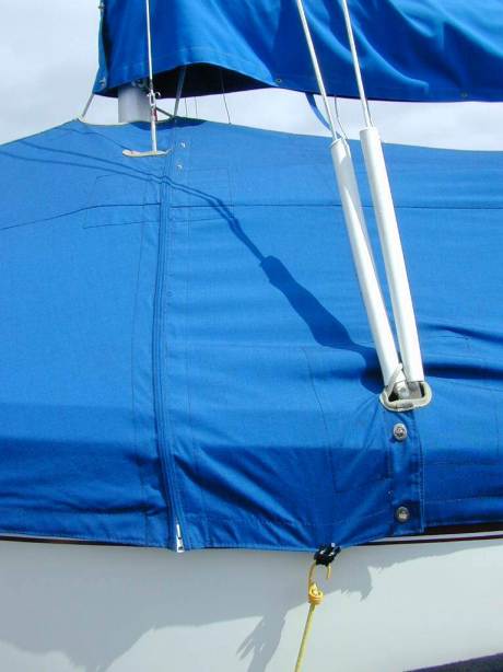 The picture below is a close up of the zipper just aft of the mast, which is used for mast up storage.
