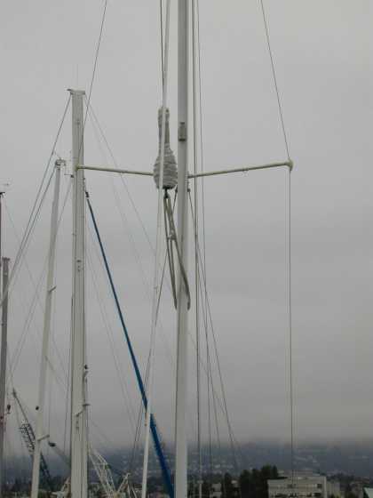When I bought it , the boat had new SS spreader brackets, new u- bolts for the lower shrouds, and new standing rigging (and reciepts to show the new standing rigging was less than one year old), but something didn't look quite right at the spreaders. The lead on the port-side lower shrouds wasn't fair and the spreader bracket was misaligned. So I decided to unstep the mast and take a closer look. The cost to unstep the mast was about $75. It'll cost about $100-$125 to restep it, because it takes longer to re-step than unstep a mast. |